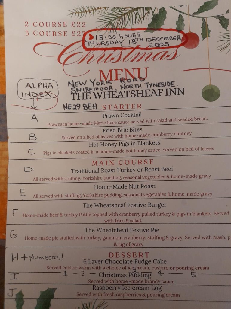 THEDATE:- 18TH DECEMBER 2025. START TIME 13.00 HRS. DEPOSIT £5. PER PERSON,WILL BE PAYED IN ADVANCE OF ALL CONFIRMED ATTENDEES BY JIM SMITH.
